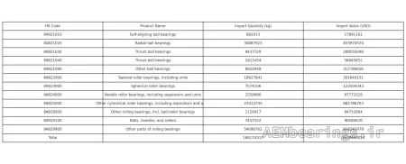طبق آمار گمرک، از ژانویه تا دسامبر 2024، چین 35.19 میلیارد دلار بلبرینگ وارد کرده است که نسبت به مدت مشابه سال گذشته 6.73 درصد کاهش داشته است . حجم واردات در مجموع 16.62 میلیون تن بوده که 9.14 درصد کاهش یافته است . میانگین قیمت واردات بلبرینگ افزایش یافته و به 2.12 میلیون دلار در هر تن رسیده است که تقریباً چهار برابر بیشتر از میانگین قیمت بلبرینگهای صادراتی چین است.